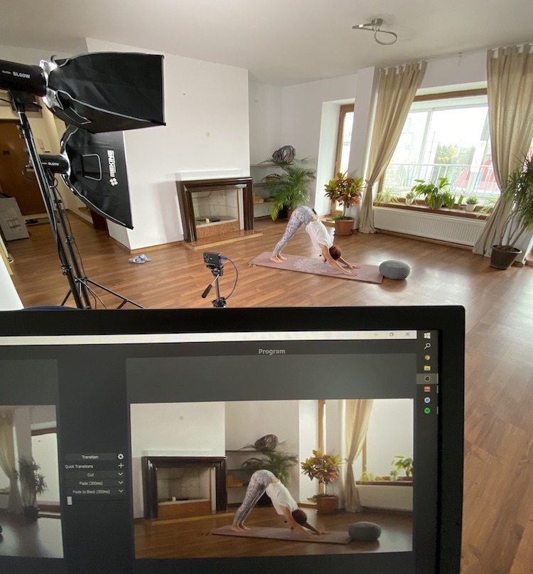 La începutul lunii martie 2020, ca mulți alții, am fost puși în fața situației de a ne închide porțile. Totuși, din dorința de a ne menține aproape de comunitatea creată, am făcut transferul în mediul online și am început să transmitem orele de Pilates și Yoga live, cu ajutorul tehnic al soțului meu, Andrei.